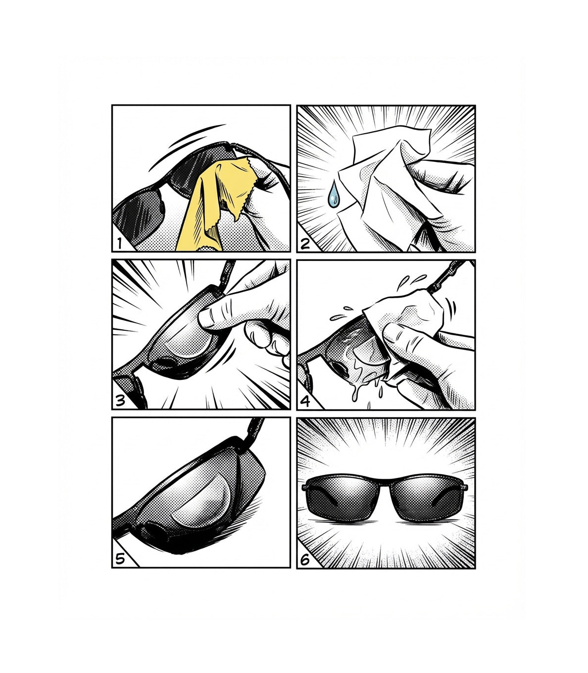- Prep: Clean the inside of your eyewear. Rinse the stick-on lenses with water and gentle soap (do not wipe dry).
